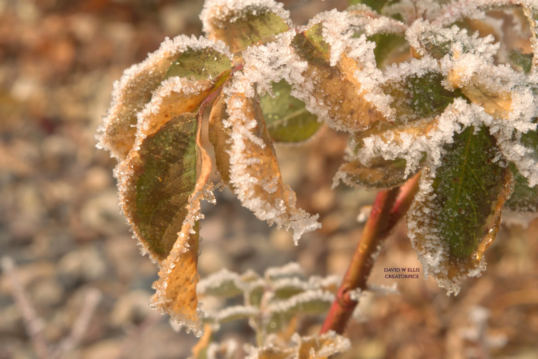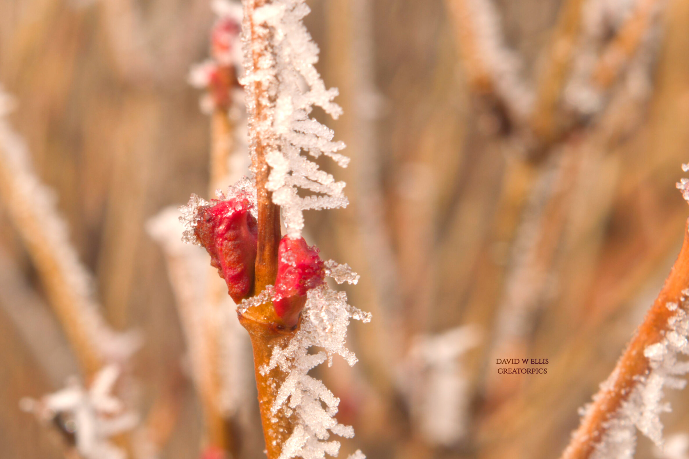 Hoar frost on a hybrid shrub…I forgot what it is. But this is about hoar frost…it develops on shrubs I don’t even know the name of!