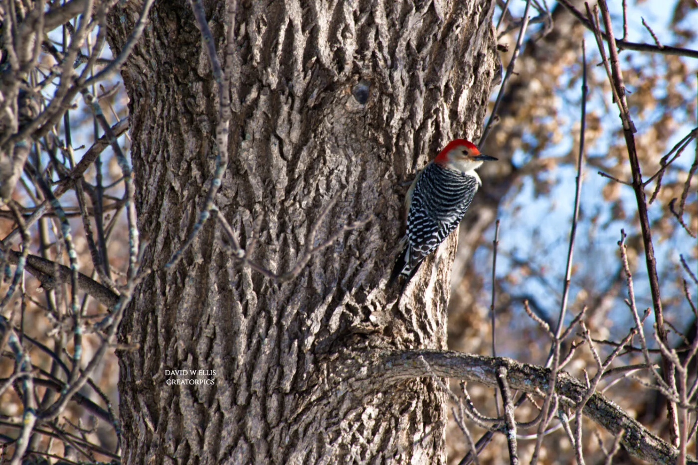 Very good. This may explain why the woodpecker’s crown is red. To give humans a sense of energetic happiness and optimism. Very good idea. If you spend any time observing the Red Bellied Woodpecker you would agree they are energetic. Their loud calls and undulating flight pattern easily draw the human senses. The striking colors please our eyes. As far as optimism…from a wood pecker? Okay…Sure, the beauty of Red Bellied Woodpeckers, the energy they display in flight and their shy careful behavior in the woods and around bird feeders remind us this part of the world is right. Seeing a Red Bellied Woodpecker is a fine reason for optimism.