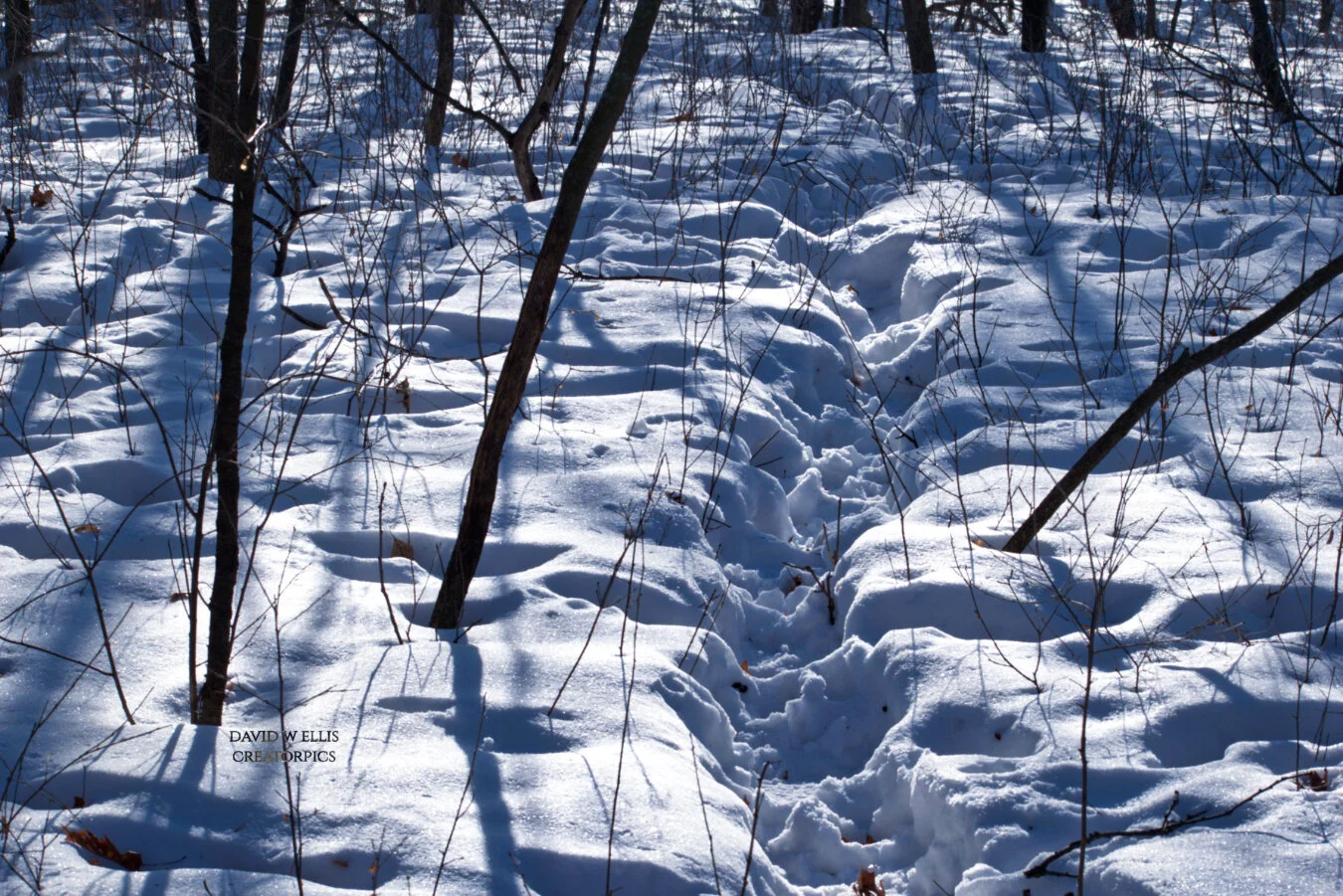 The hollow hair and dense winter coat allow whitetails to lay on the snow. Their weight and body heat gradually create a deer shaped cup in the snow.