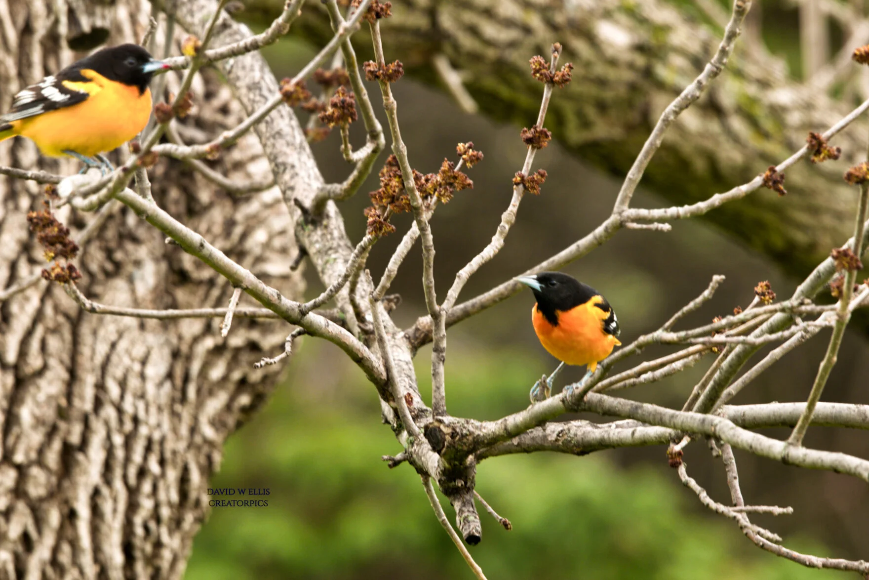 This photo captures the beauty of the Baltimore Oriole…but does not meet the qualifications for a great bird photo. Neither bird’s visible eye is sharply focused.