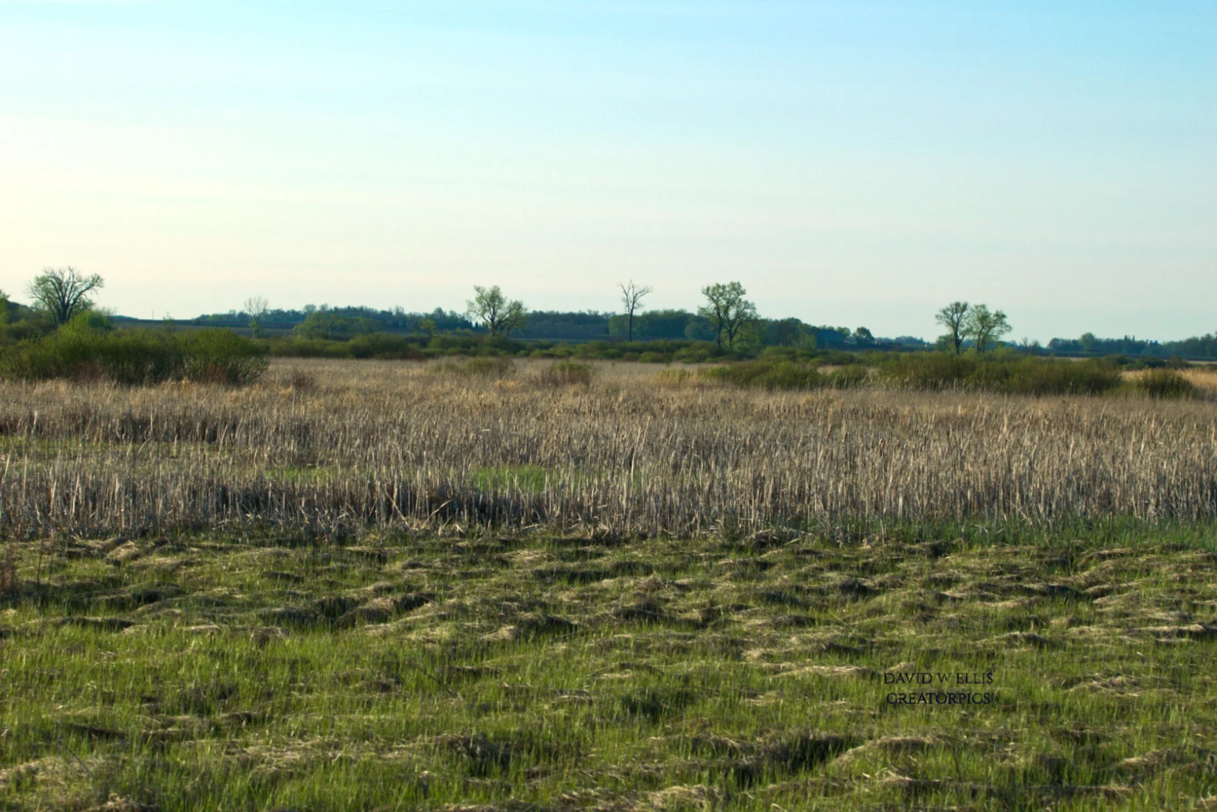 this prairie is almost always in various stages of wetness. The wetland plant cattail is visible in the foreground. The land for this prairie is located at the edge of a ridge of sand which used to be the beach of a massive lake which formed the Red River Valley-Lake Agassiz. When this lake existed is not the point…it did exist. When the water receded, the beach of sand remained. Ever since, rainfall percolates through the ridge of sand and saturates the land parallel and slightly lower to it. We know this land as the Red River Valley. Because this land remains wet almost all year round, it cannot be farmed. It makes marvelous habitat for Meadow Larks, Striped Skunks, Savannah Sparrows, Wilsons Snipes, and Ringneck Pheasants. God knew we would farm everything if we could, so He put a ridge of sand along the richest farm land in the world to save a habitat for the creatures He made. You should see the beautiful farm land only a mile to the west.