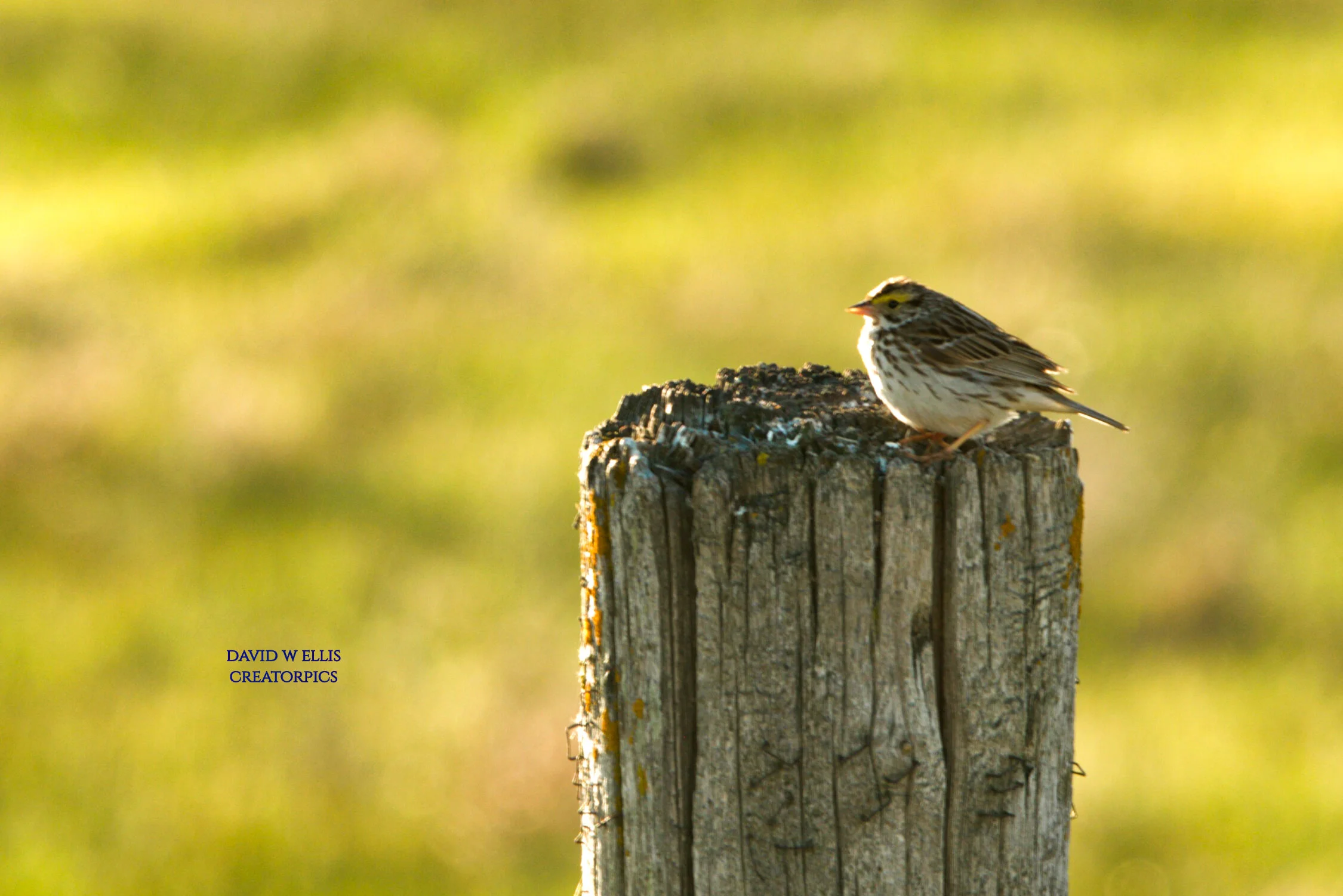 The top of this wooden fence post is about 8 inches in diameter…about half a Savannah Sparrow.