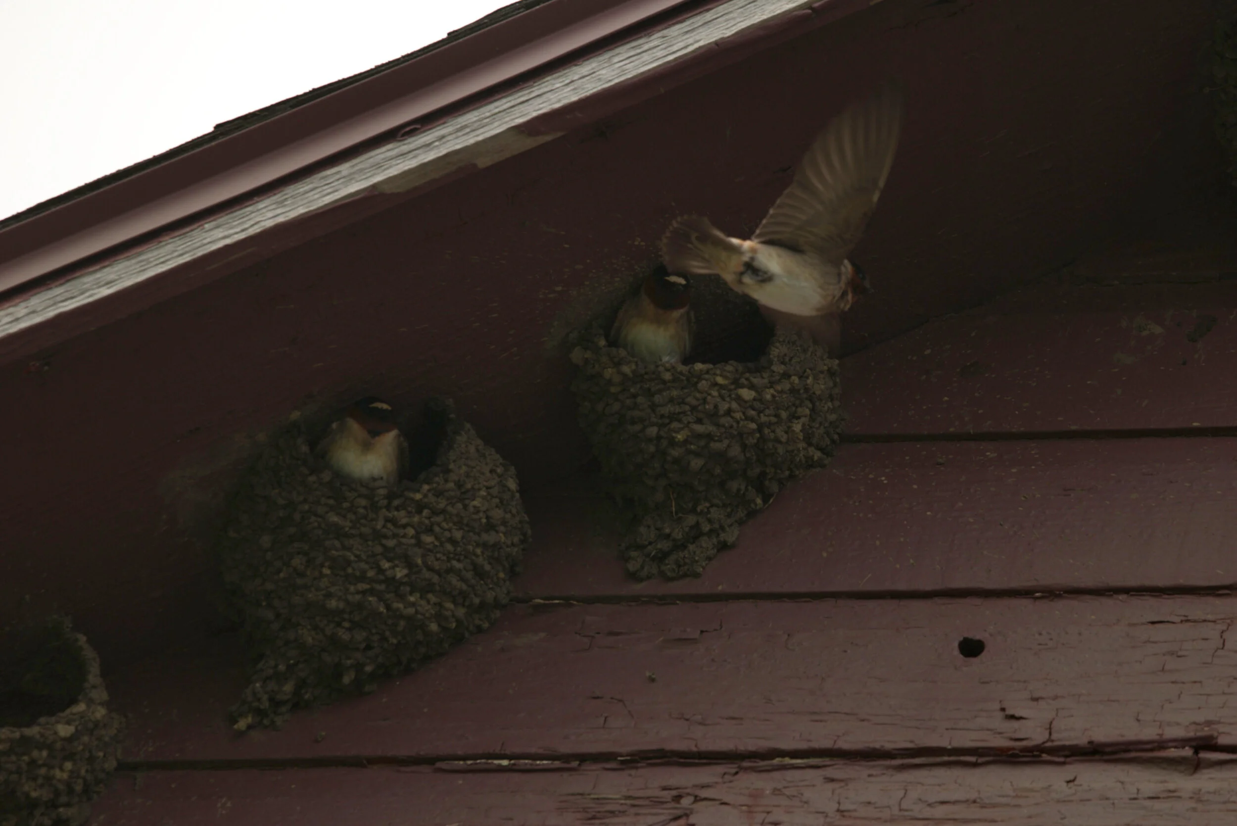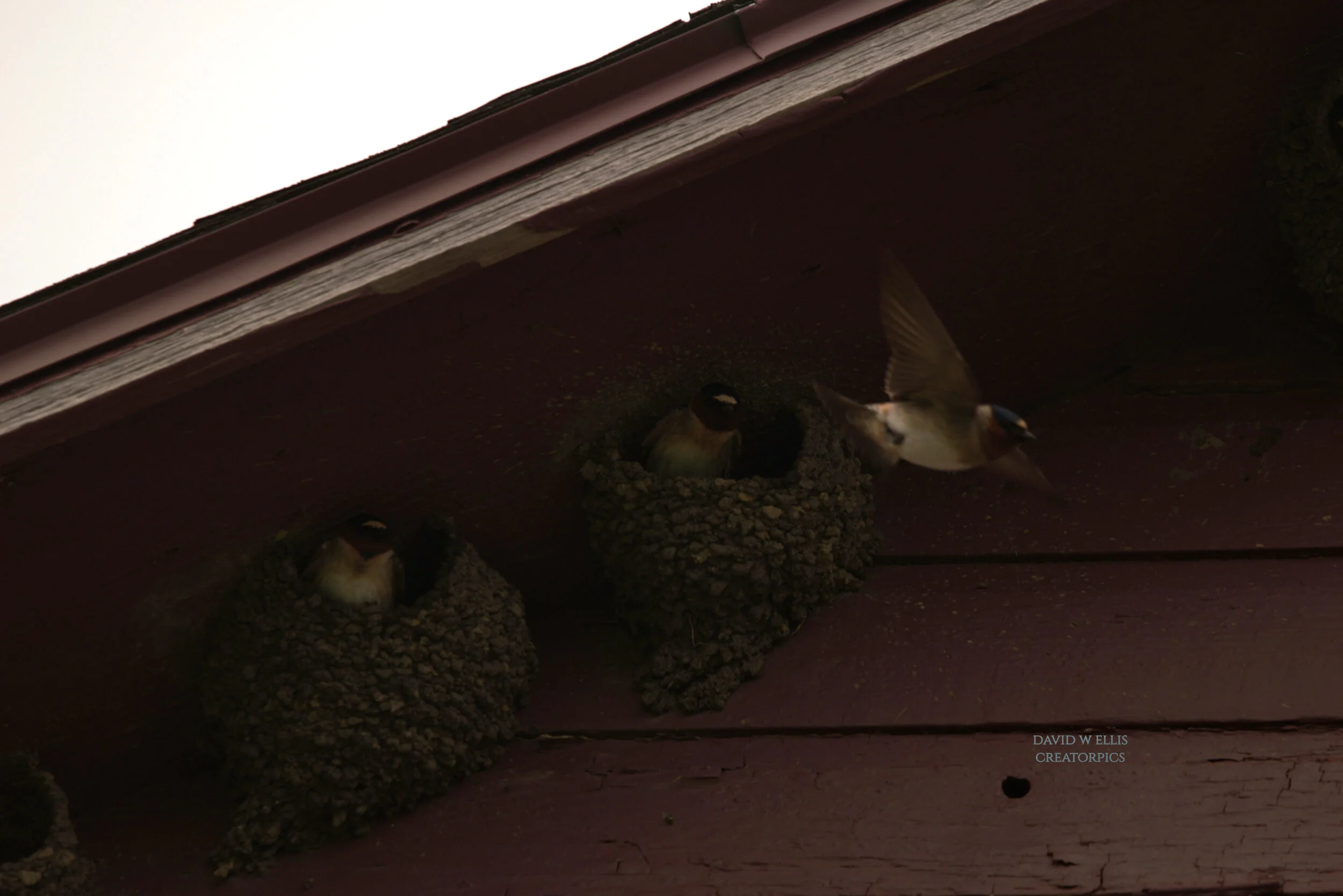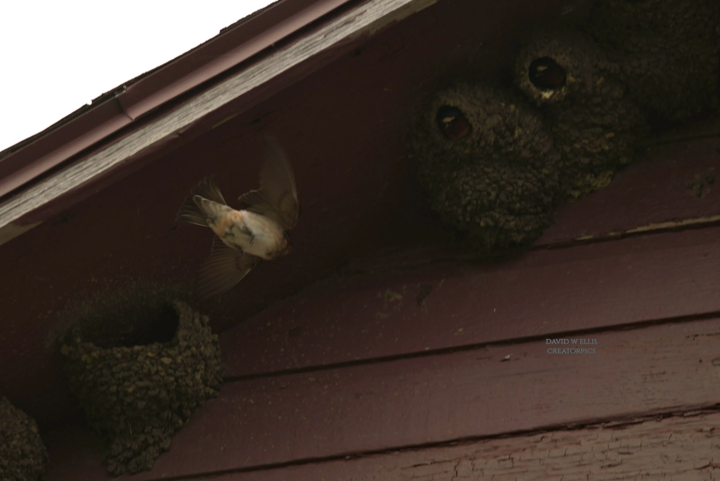 It takes between 900 and 1,200 beaks filled with mud to engineer a nest to hold up to 6 Cliff Swallow eggs. Then 10-19 days for them to be incubated and another week to 10 days for the young Cliff Swallows to grow feathers and fly. The clock is ticking for the Cliff Swallow, there is no time in the spring and summer nesting activity to waste. Could you build a nest with mud balls? Could you build it to withstand weather, to last up to 12 months in the same form and cling to a vertical wall resisting gravity all the time. It might be a good time to repeat your line…I am.