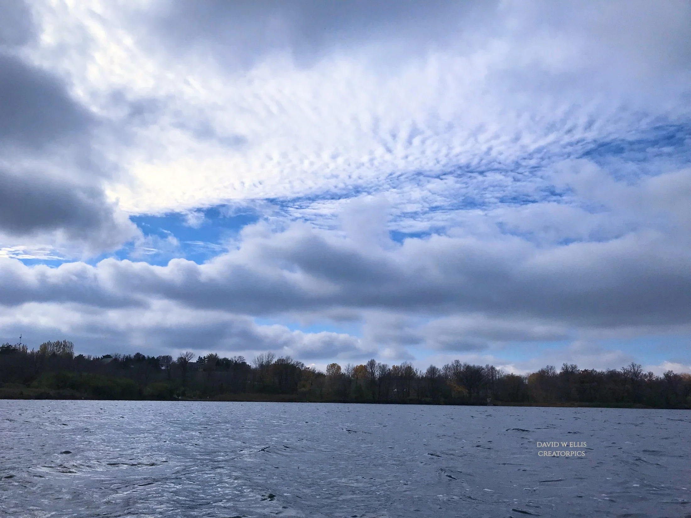 Then there is the sky. On water the sky looks bigger because you can see more of it. Clouds are more impressive, today they moved the same direction as the waves.