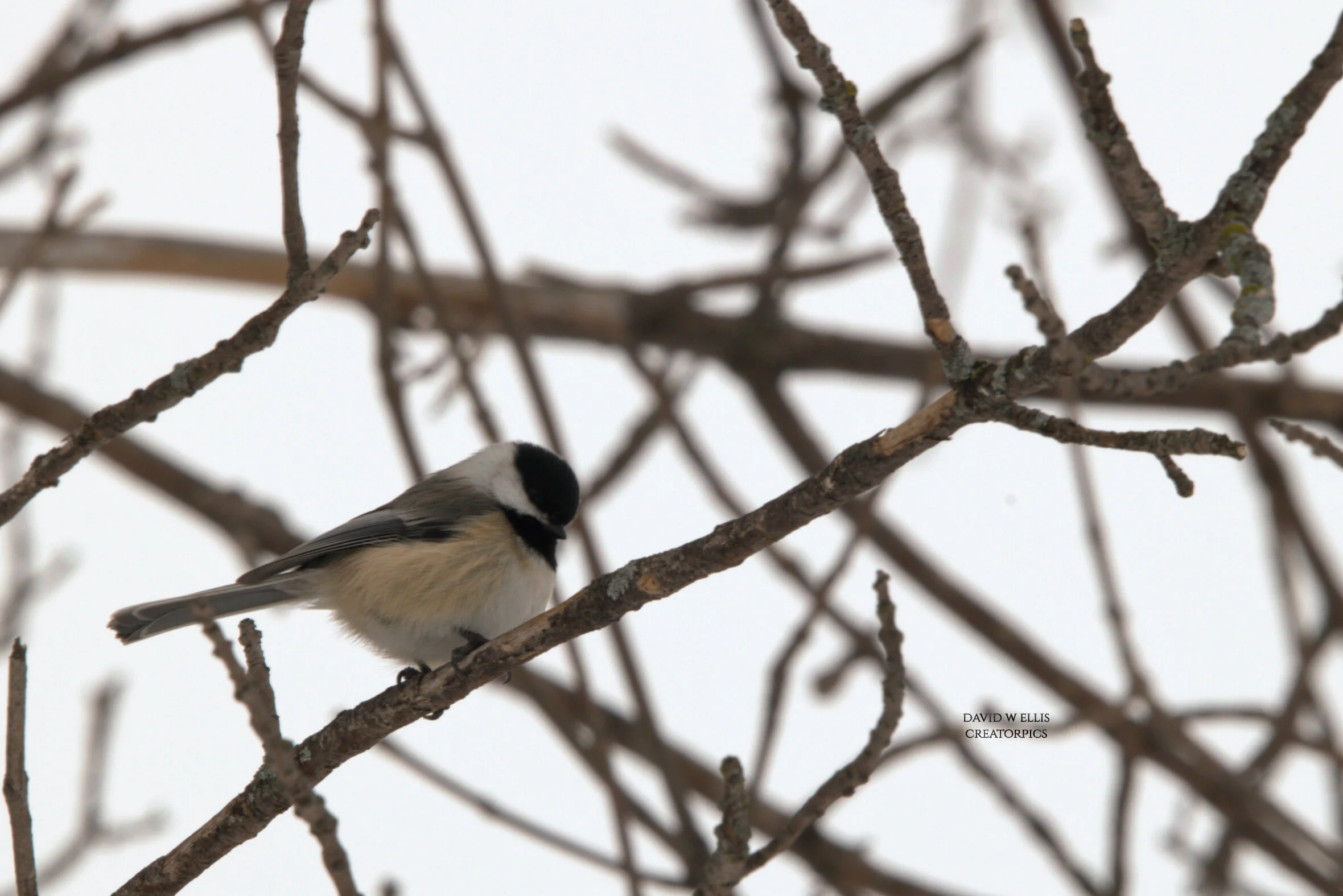 I think this one was watching the camera lens. Chickadees are exceptionally alert birds. Their watchful eyes do not miss anything. Life depends on alertness.