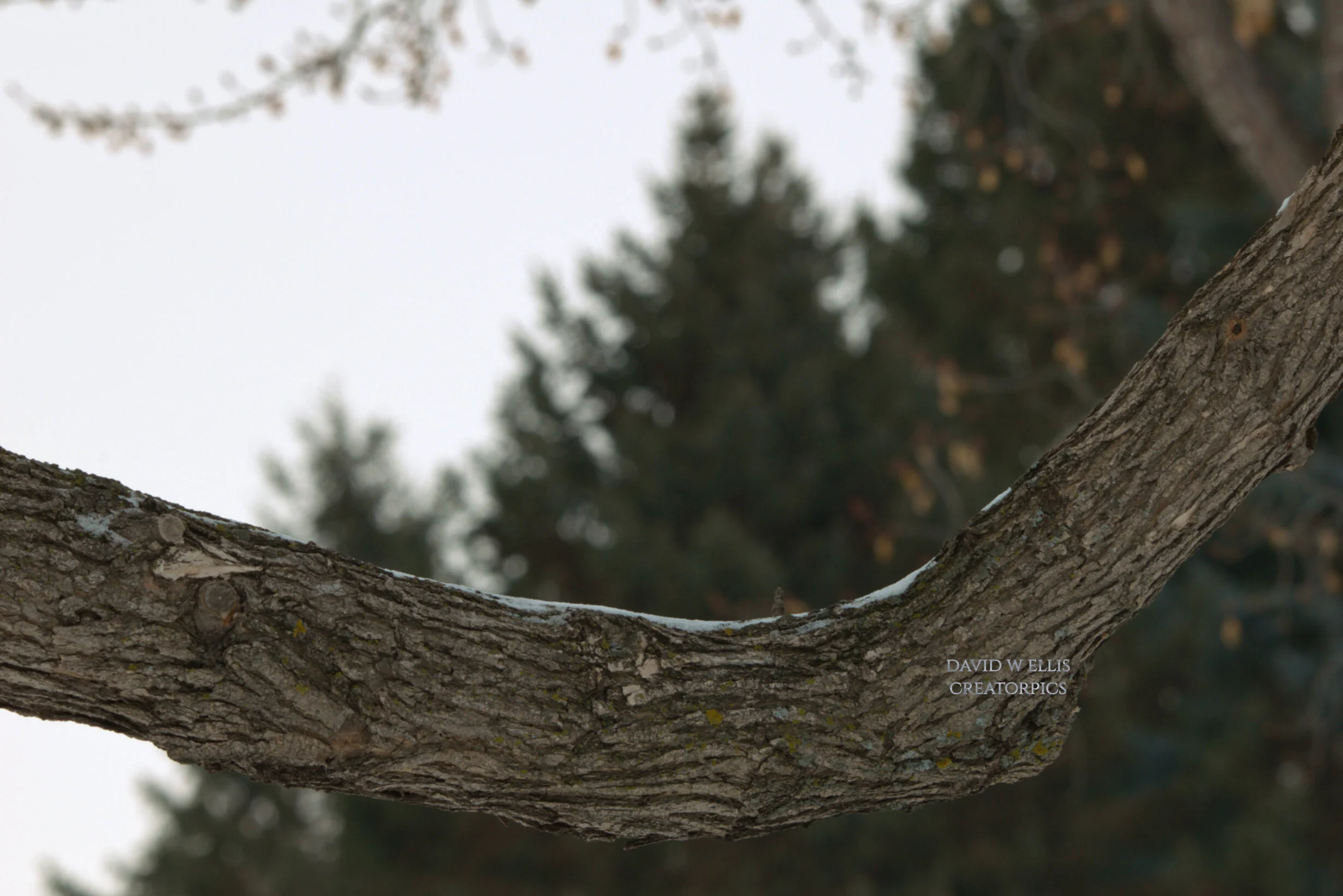 Does this limb seem to be a good chickadee perch? I’ve never seen on perch on this limb. It is too much in the open, too exposed. The Chickadees prefer the upper limbs of this Ash tree where there are many twigs to protect them from the neighborhood Cooper's Hawk. (A Chickadee predator.)
