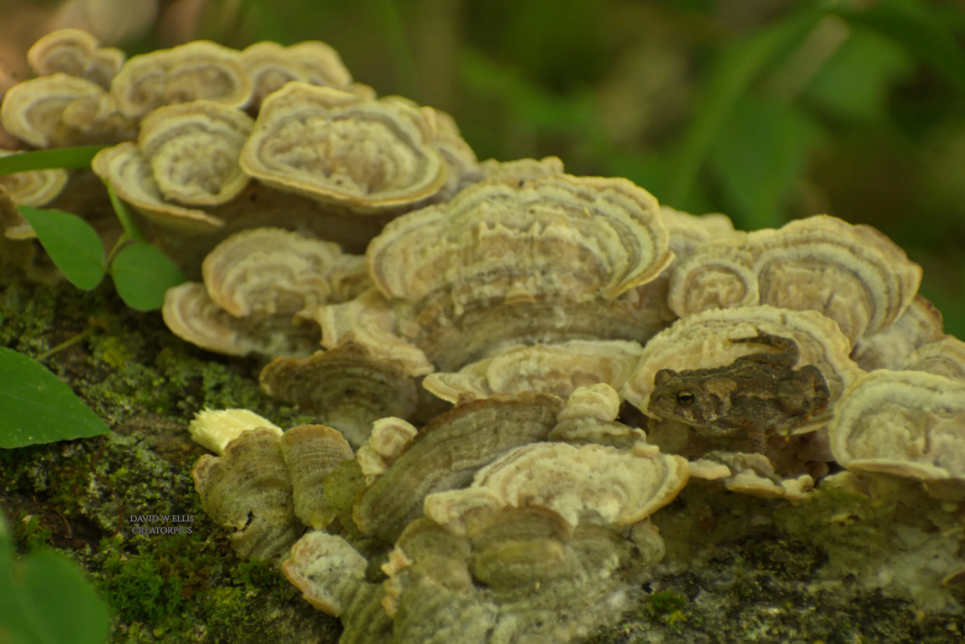 Peace is found, in a single mushroom, a solitary green plant, and raindrops on a leaf.