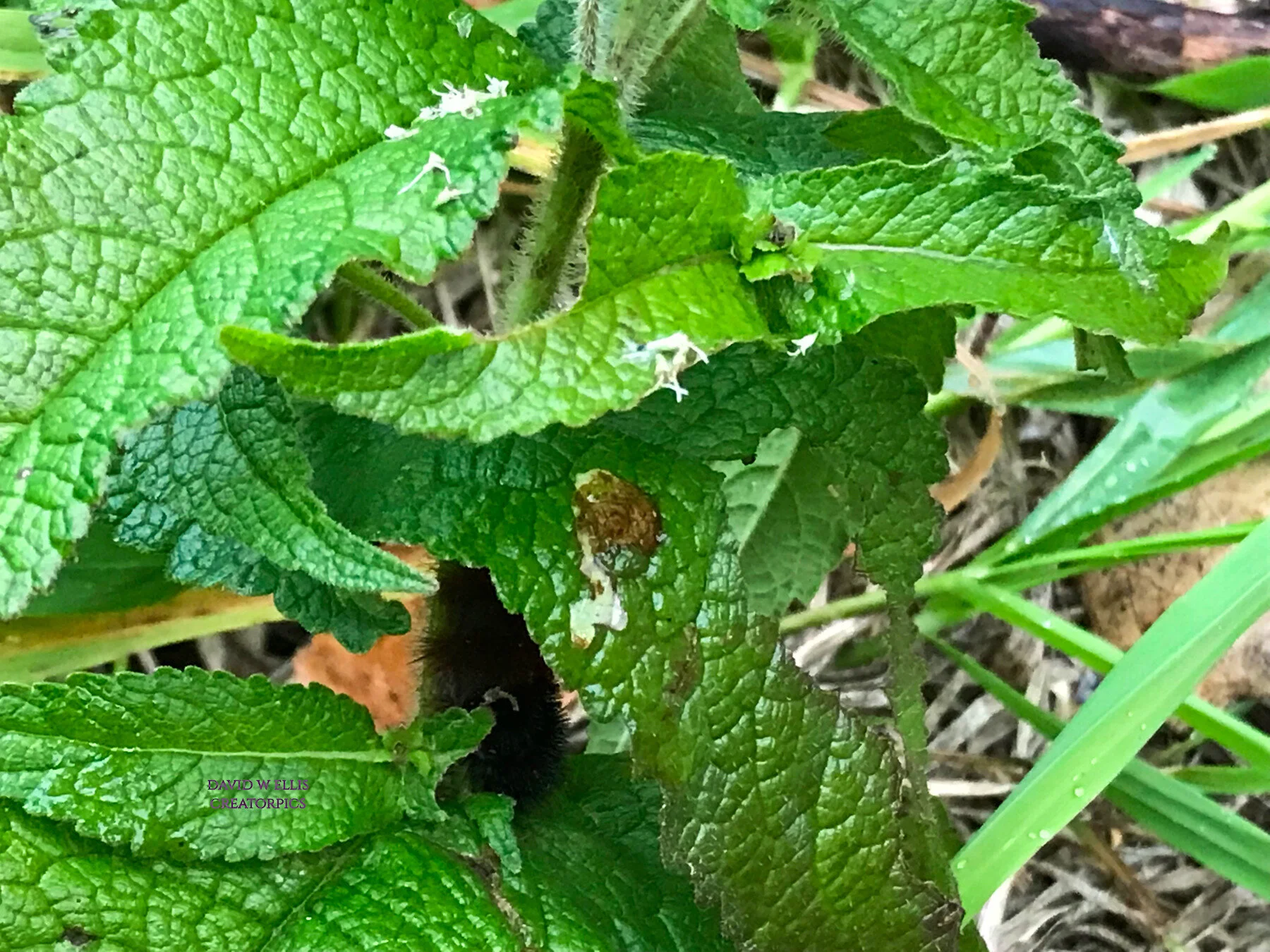 One woolly bear was visible on top of the plant. This one was not so easy to see.
