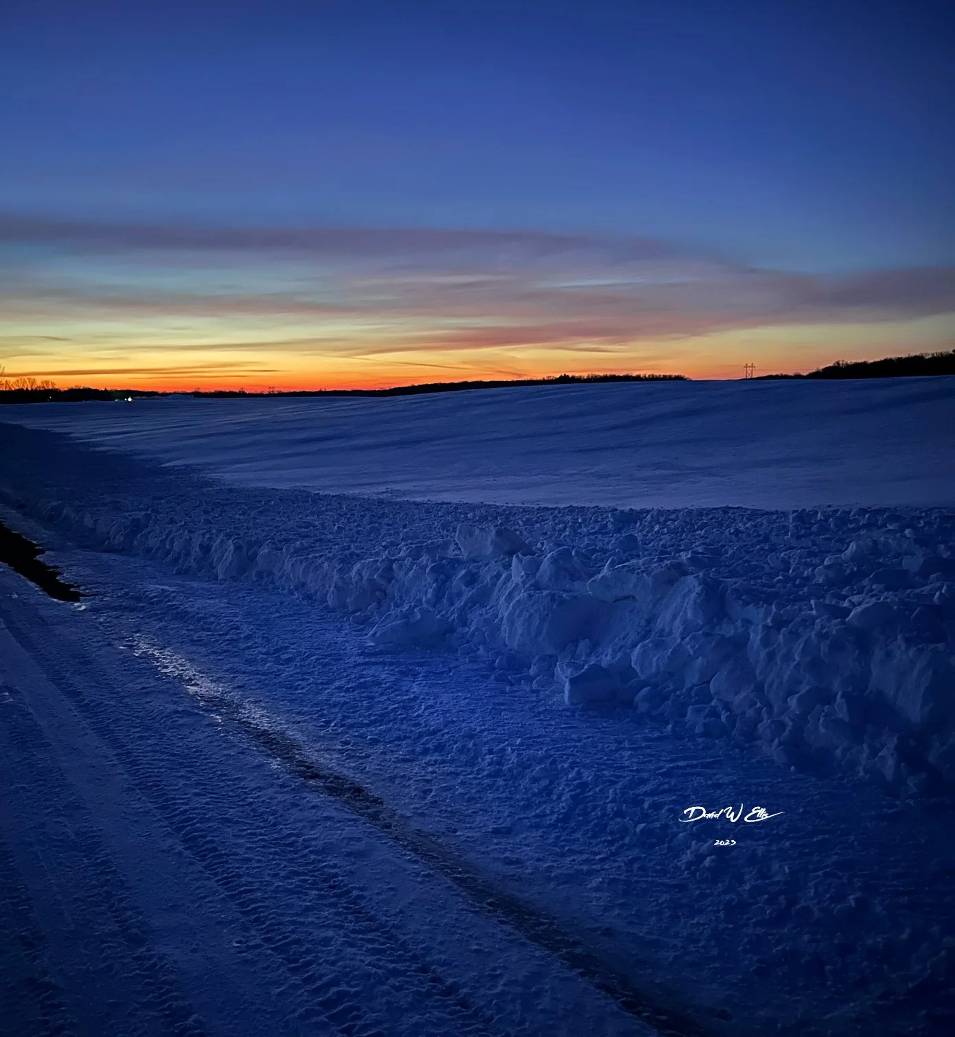 Two Walks-One Day View fullsize What happens? Two walks, one day…What happens to 5 human senses?What happens to muscles, nerves, bones?What happens to the mind?Two walks…one day…What happens?First walk before sunrise…Semi-darkness, south breeze chilling the face.Nothing moving but wind…no other sounds.Peace and mystery combined with brilliant before sunrise color show.Feeling order, a sense of vast power, with these there is comfort…a before sunrise guarantee.A second walk later…facing a 30 mph south wind.In sunshine and drifting snow.My trail, snowshoe packed snow…Decorated with a slim line of coyote tracks.Two walks-one day.What happens? View fullsize David EllisMarch 15, 20232 Comments Facebook0 Twitter LinkedIn0 Reddit Tumblr Pinterest0 0 Likes
